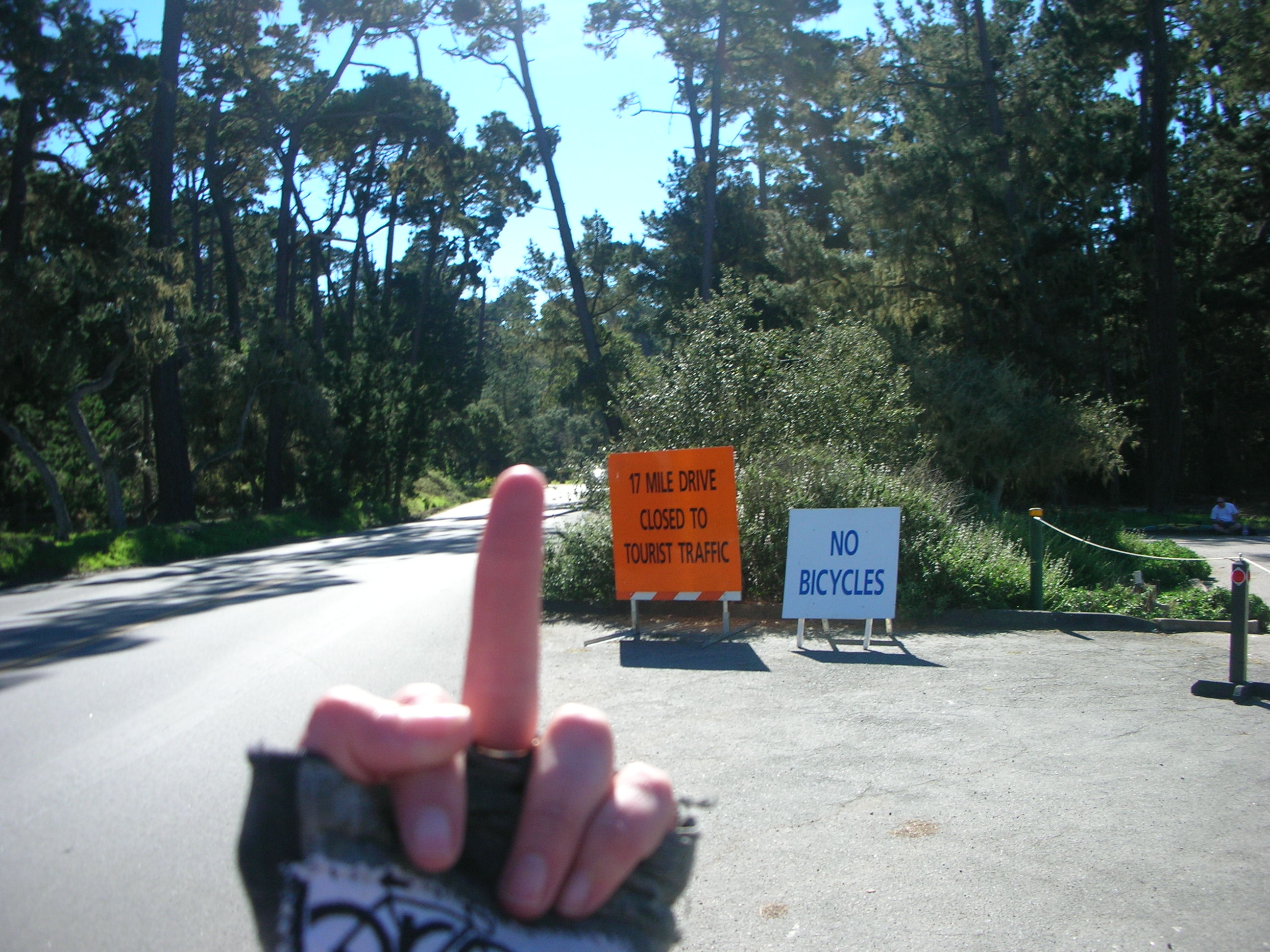 The ride through Monterey was gorgeous. I really don’t mind riding with tourists and pedestrians on the path and there are so many nice places to stop and check out the view without having to lock up my bike. It was after Monterey, when the traffic started to get insane. Then I got to 17-Mile Drive and found it closed for some muckity muck fancy golf tournament.