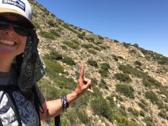 I may have had a short day yesterday, but I still needed plenty of breaks. Today, my left shoulder was the weak link. It got sore before everything else. I walked until it ached so much I can’t stand it, then I’d stop. Taking the backpack off and on was an ordeal so mostly I just leaned against rocks. For lunch I ate something in a tortilla. Then I plodded on at my excruciatingly slow pace.