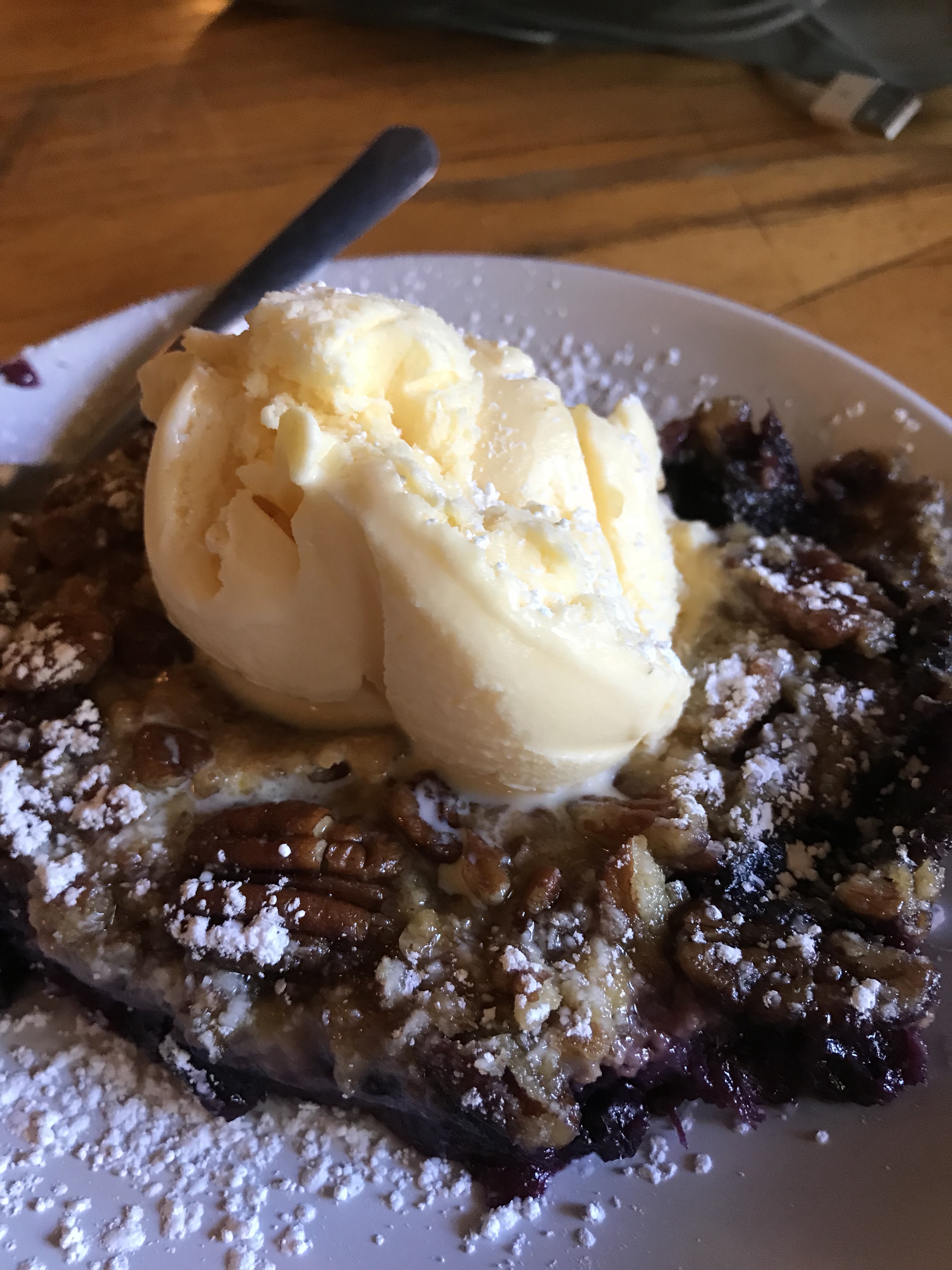 I’m at Pine House tavern in Mount Laguna. Eating cobbler and drinking coffee. At the big table there’s some other hikers, a guy from Spain, some dude hiking in flip flops who came from New Zealand but doesn’t sound Kiwi.