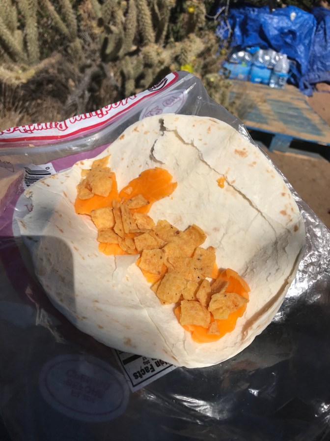 My late snack was a cheese and Frito burrito. Apparently I make strange food choices in the desert.