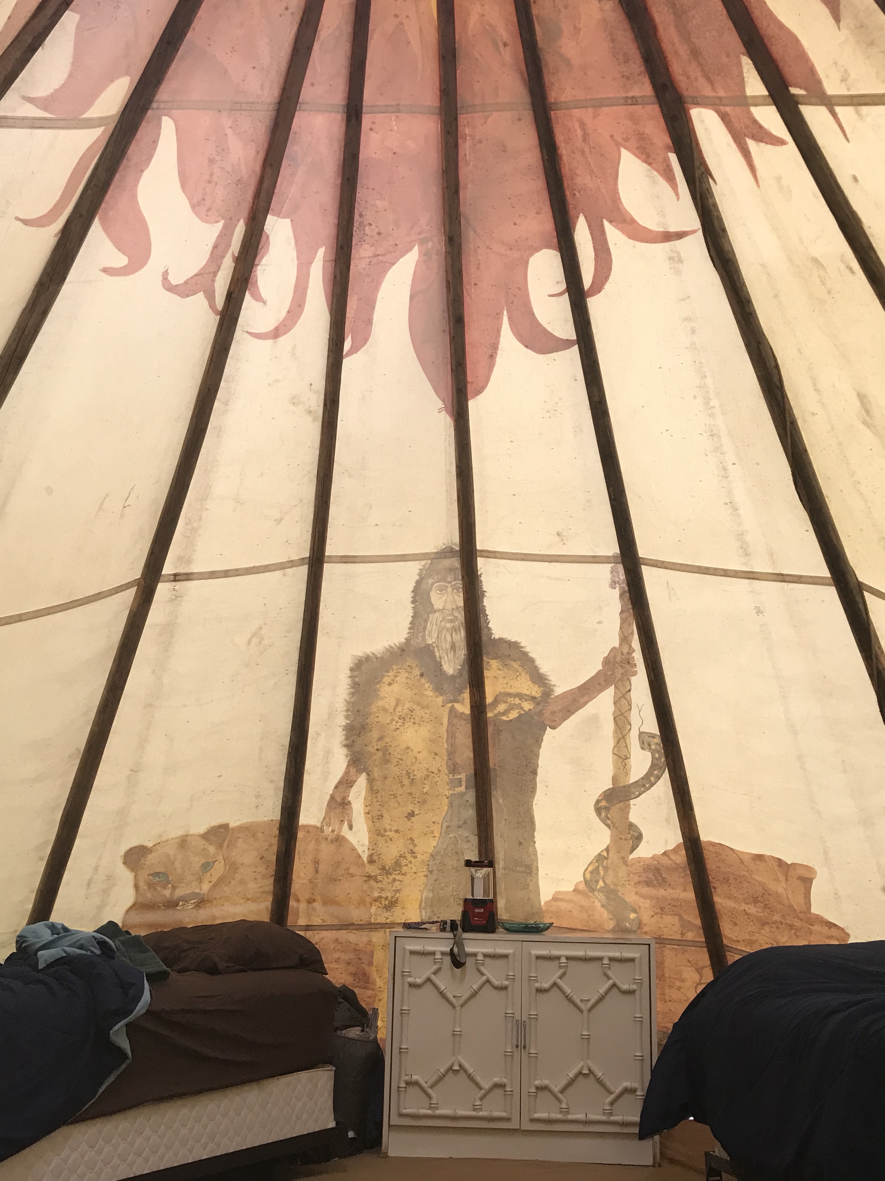 This morning I woke up in a tipi. A cat came to visit me in my bed. That’s right, a bed. Sleeping in a bed is something I should never take for granted. Or sleeping with a cat.
