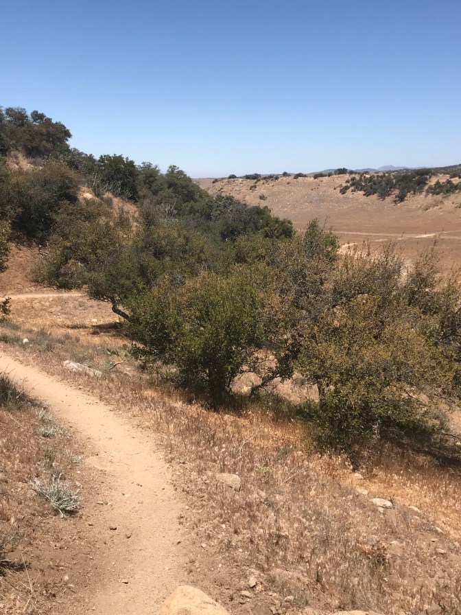 The trail went through pasture lands full of dry sticks and dried cow plops. It reminded me of being a kid, playing in the fields with my sister and our friends. We used to take off our shoes and socks, so they wouldn’t get full of foxtails. My feet were leather hard when I was a kid. Not anymore.