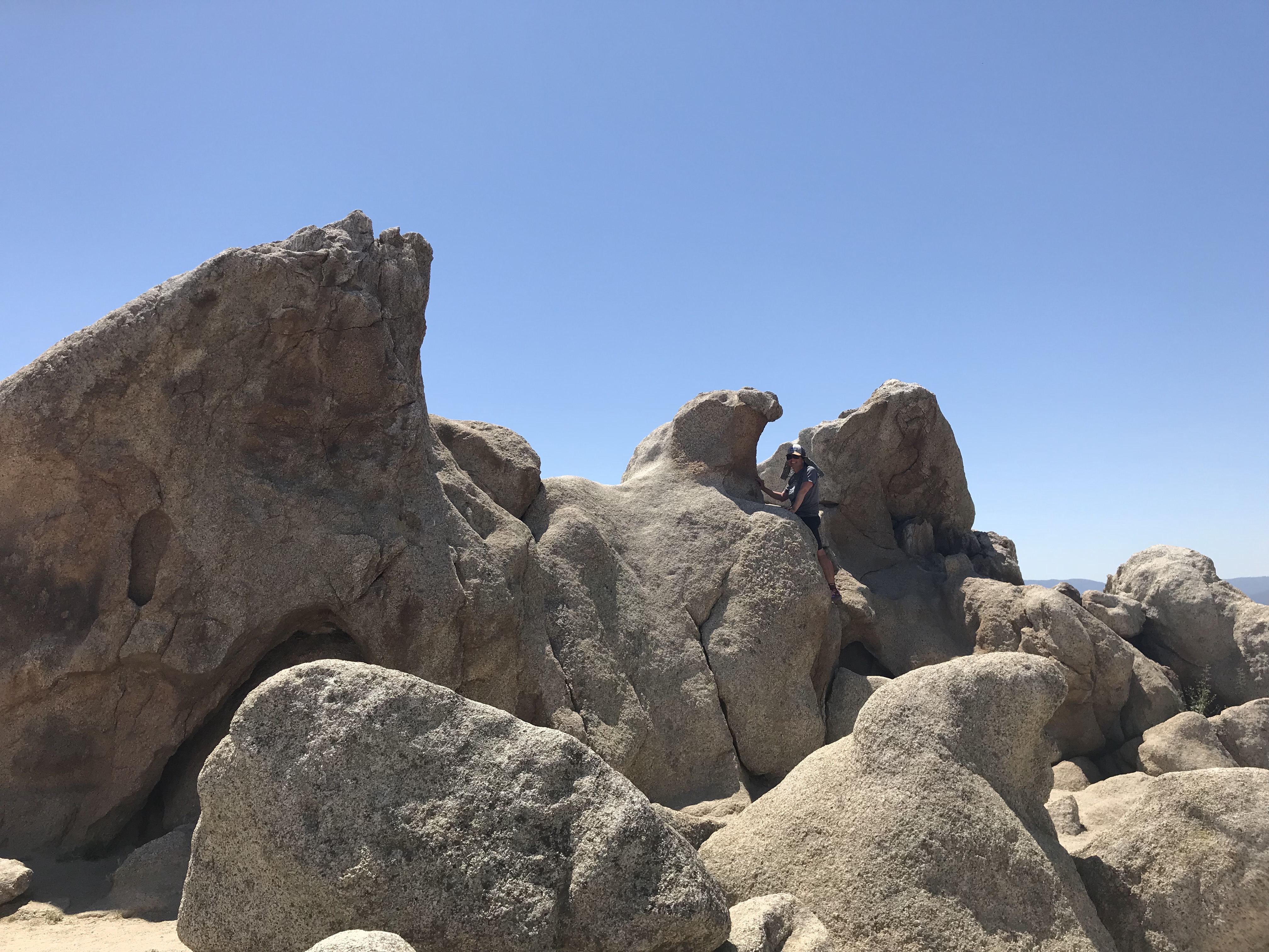 Eagle Rock is out in the middle of dried fields of grass. I’ve seen so many pictures of it, I recognized the shape of the surrounding hills. Day hikers materialized. I handed my phone to one and clambered up the rocks. Too fast, because I bashed my knee on a rock that was a cheese grater. Yup. I shed blood on Eagle Rock.