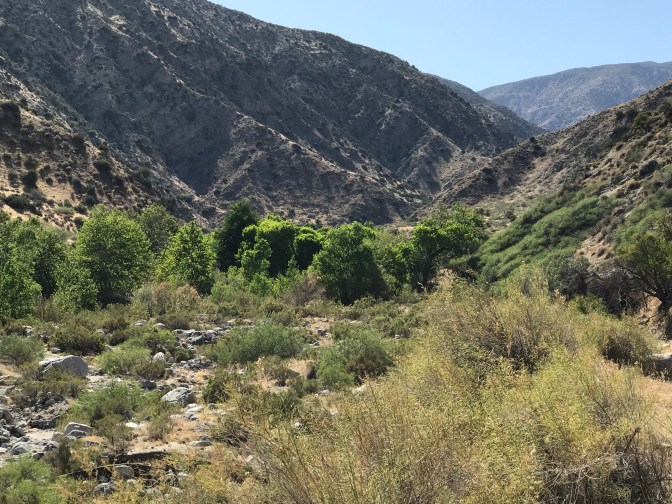 It’s too crowded, I think and keep going. The trail turns back onto the desert and I curse my decision to keep going. Until I come upon the creek again, a lonely pool of cool deepish water. Here’s where I want to be. I pull off my shirt and shoes and socks. My skin nearly sizzles as I lower myself into the wet, tadpoles wiggling away frantically. I pulle out my Sawyer and pump a liter of water and then pour it overflowing into my mouth.