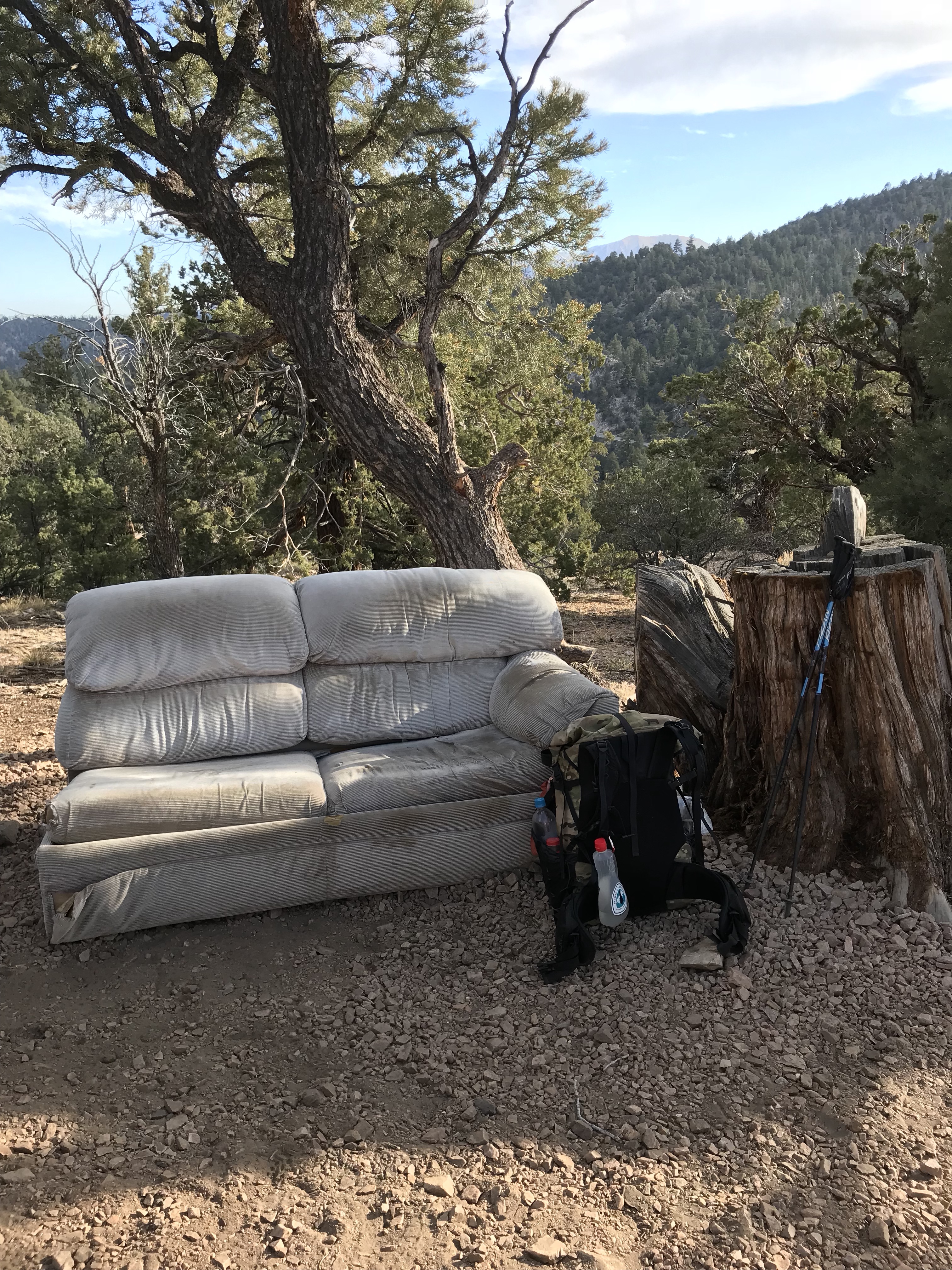 I saw two more PCT landmarks: the zoo and the sofa. It’s not a real zoo, just some sweaty large animals in big cages. Not nearly as cramped or unshaded as I’d gathered from earlier descriptions. Also, it’s for sale. You can buy the land. The animals are moving to better digs off the mountain.