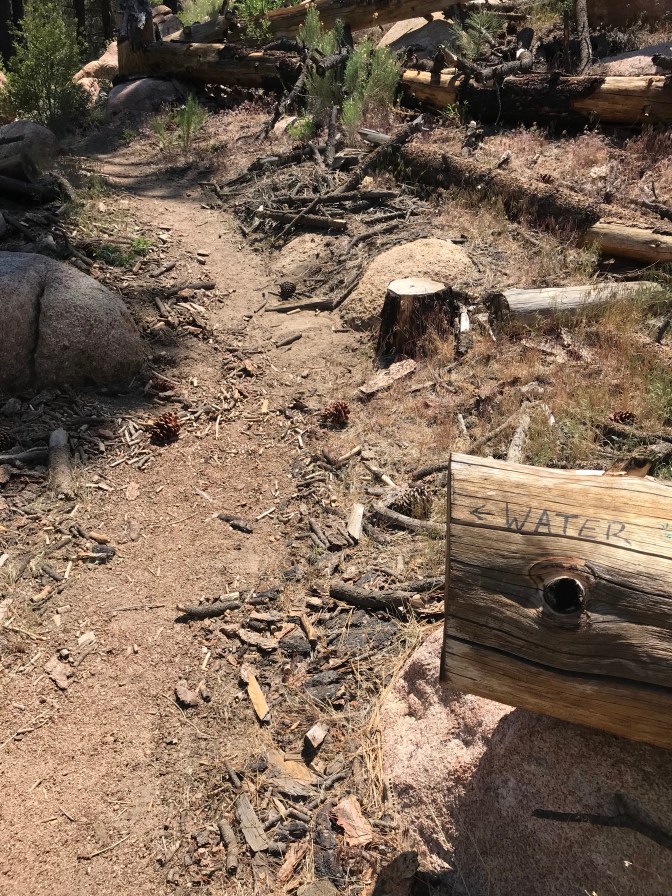 The creek was dry and the cache was empty at Caribou. Luckily the ladies I’d camped with were overnighters. The woman who had to work that afternoon as a waitress at Cracker Barrel gave me her extra liter. Another one shared a few Trader Joe’s coffee sticks. Thank you! The next creek was 11 miles away so I took off at my new speedy pace. I tried to stay focused on covering ground and not how far 11 miles sounded.