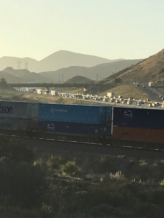 Normally I spend very little time thinking about fast food. Today it was all consuming. I could hear the freight trains going through Cajon. A few days ago, I was crossing under Interstate 10 and now I was approaching I-15.