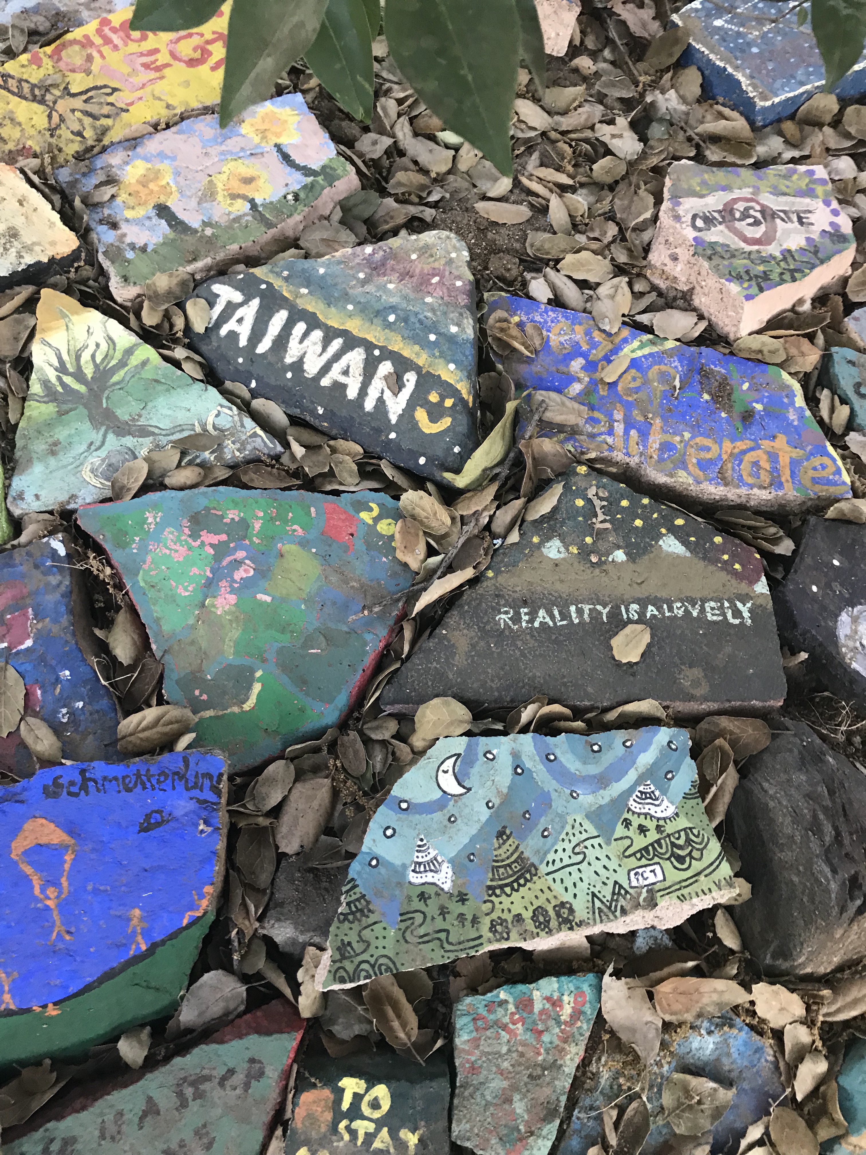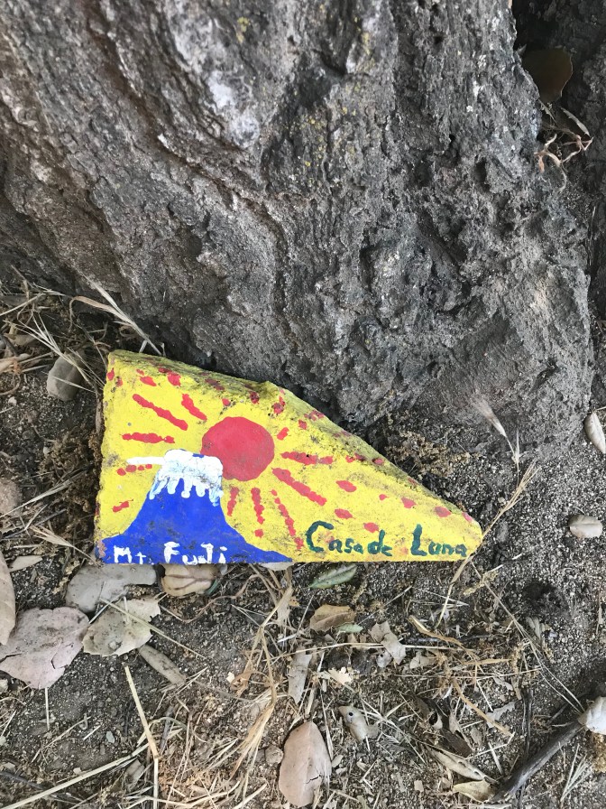 I woke up in my forest nook and wandered down for the pancake breakfast. Casa de Luna is like an enchanted hippie forest. I had to have a big explore looking for my favorite painted rocks hidden like Easter eggs in the Manzanita forest.
