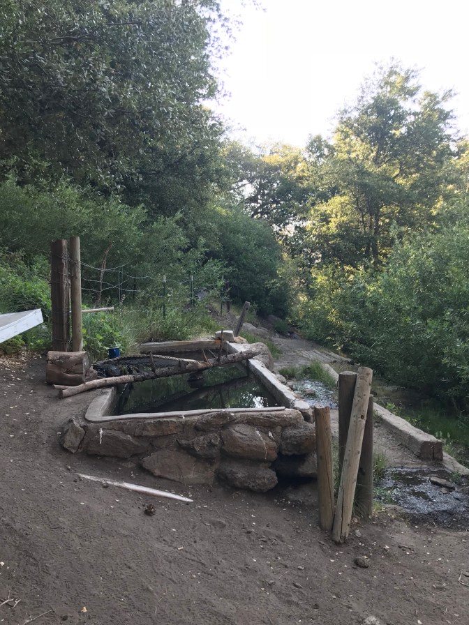 The first water was at Golden Oaks Springs, which is just as lovely as it sounds. The water gushed into a large trough full of tadpoles. I dipped my hands in and got a handful. I love the feeling of tadpoles wriggling in the creases of my fingers. Not wanting to leave the spring, I made up chores to keep me there. I washed my socks and ate some tacos and did a little yoga.