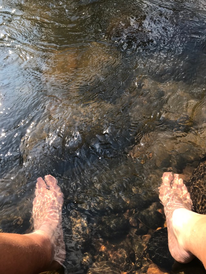It was amazing to see so much water. It seemed impossible that there could be so much water just wandering around, there to drink anytime. I took far too many breaks. I couldn’t seem to pass by all that wetness. Besides, my feet hurt. I needed to take it easy with my new shoes.