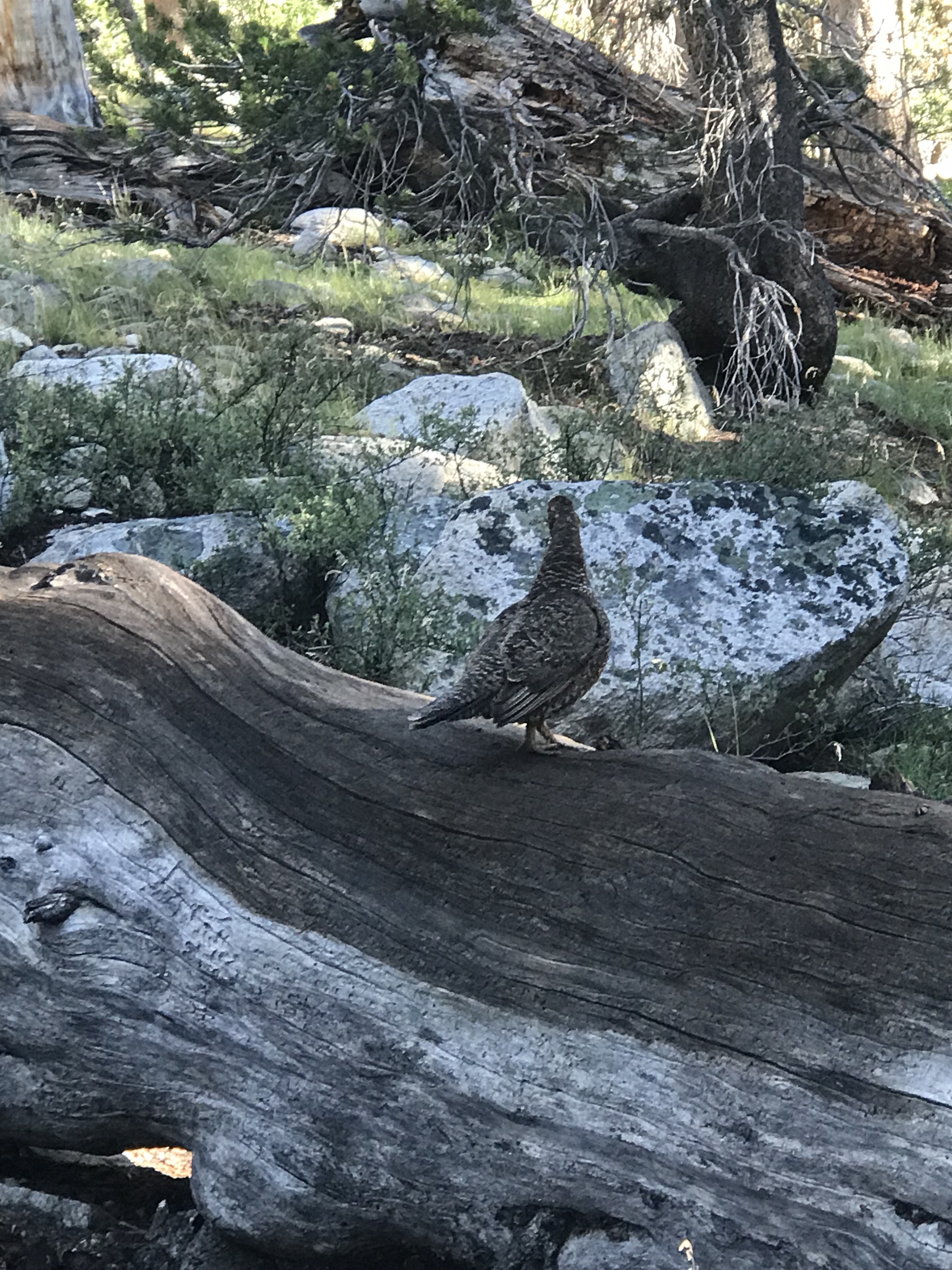Today was town day and I really was down to my last bit of food. Breakfast was my last bar with peanut butter. Then I started up the hill. It wasn’t a terrible climb, but lots of faster hikers passed me by. A pair of trail runners ran by me. Next to a stream, I heard an odd little cluck. I noticed a big gray ground dwelling bird and her chicks running around in the bush. They didn’t seem particularly alarmed by my presence. “What are you?” I asked the birds. Mountain grouse? Forest chicken?