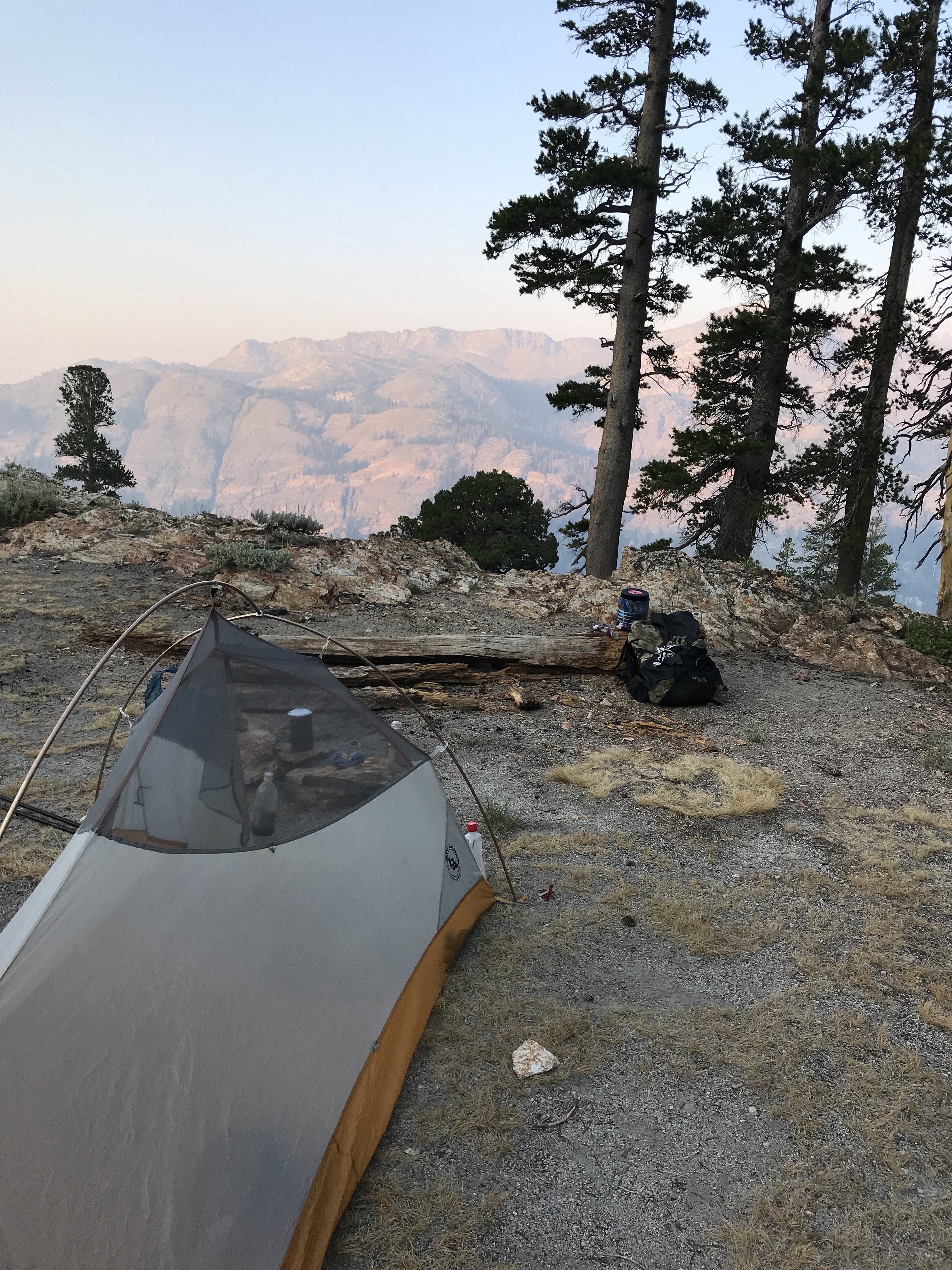 Coming over, I could see trees far below the field of boulders. I worried that I’d waited too long to camp. But then I found the most perfect campsite ever, tucked in all private, with a leveled out gravel spot for the tent.