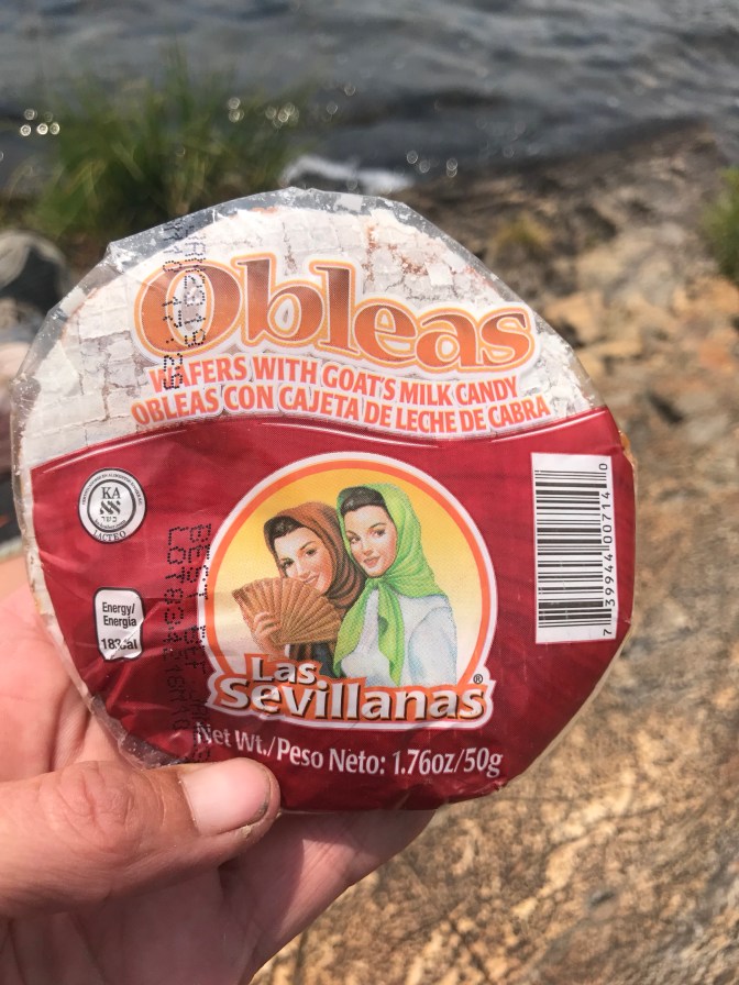 I got to a nice mountain lake and sat down at the edge for lunch. I bought all these Mexican treats at the Latino Market. I’ve been trying to only eat one a day.