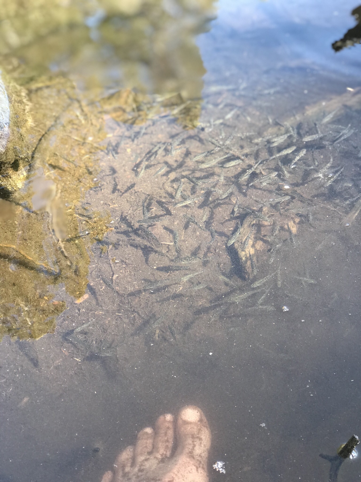 At Richardson Lake, I ate early dinner and wished I could set up camp. I put my feet in the cold water. A school of tiny fish swarmed around my toes. Maybe they’d give me fish pedicure. A crawdad scuttled after the fish. I pulled my feet out.