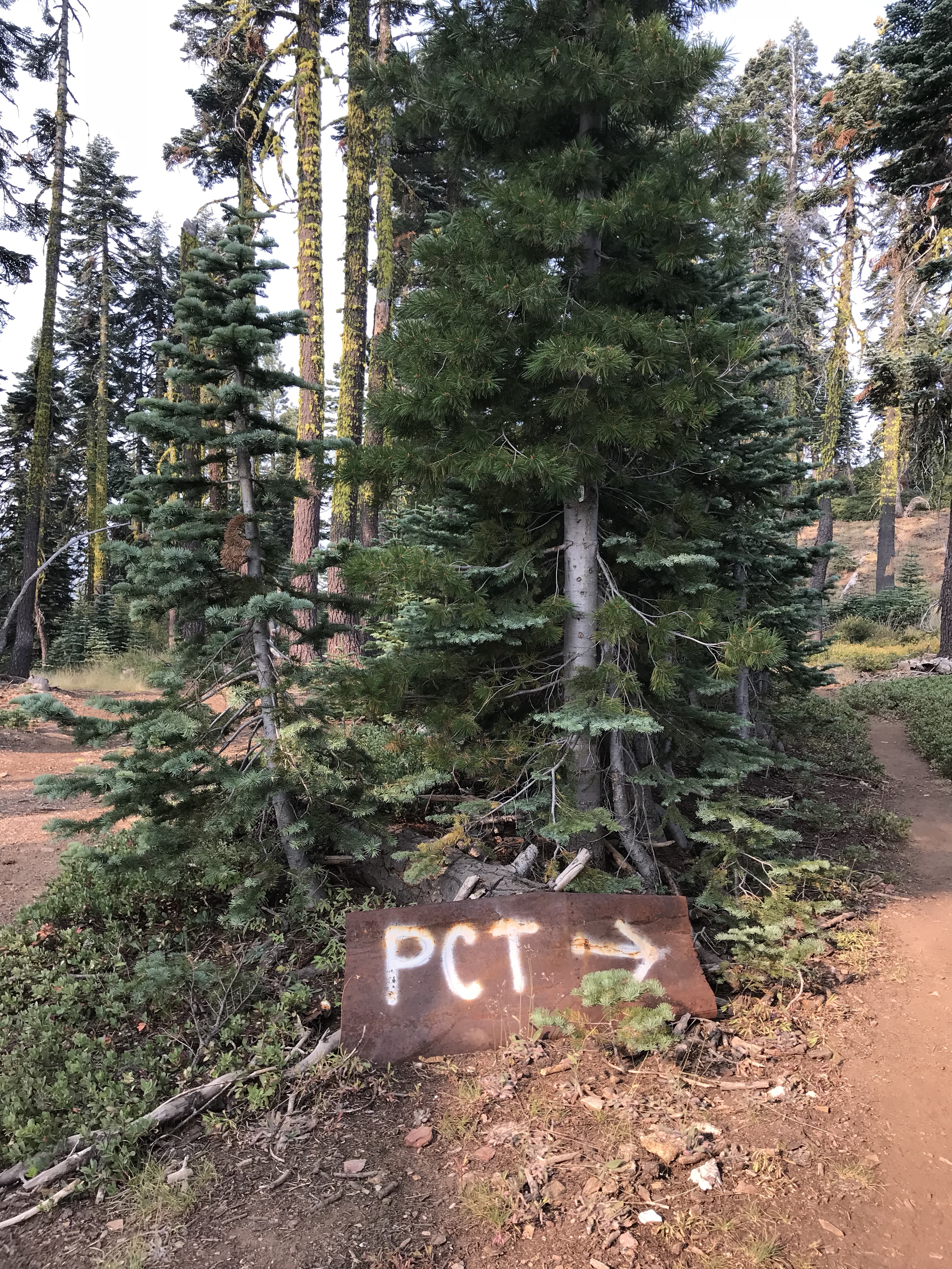 Spray painted pct on rusted sheet metal propped up in the chainsaw forest. Totally legit. Probably I’ve been listening to too many murder podcasts.