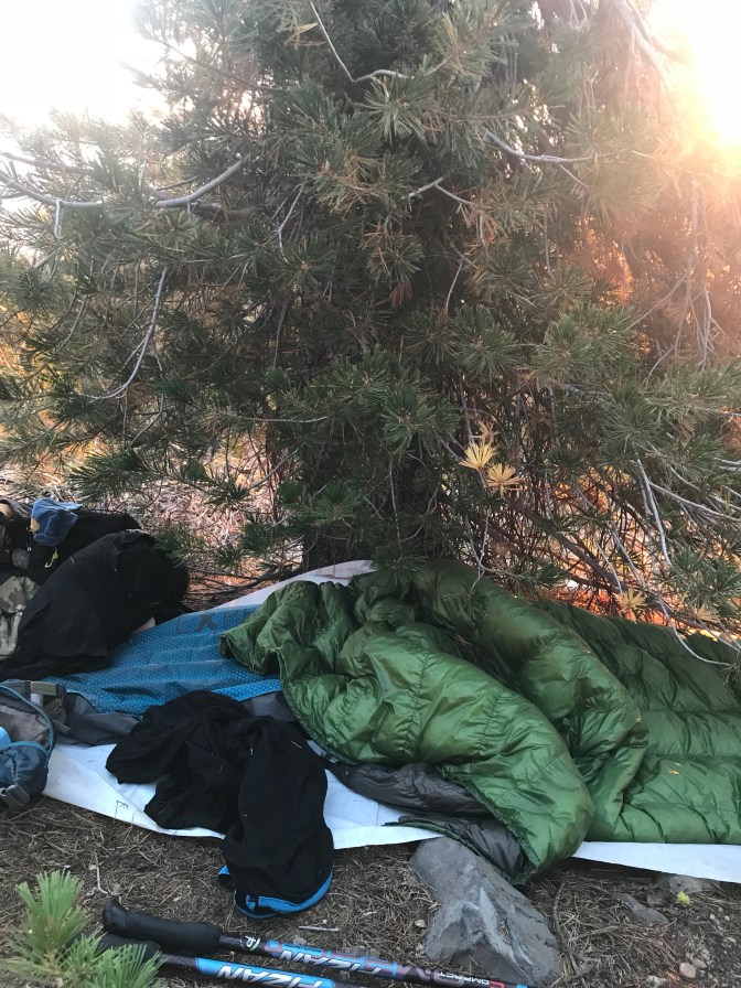 I slept on Butt Mountain, hahaha. It was a beautiful sunrise, over some far-off lake. There’s cell reception on Butt Mountain too, and my weird treewell cowboy camp was nice and cozy. Maybe a little sappy.