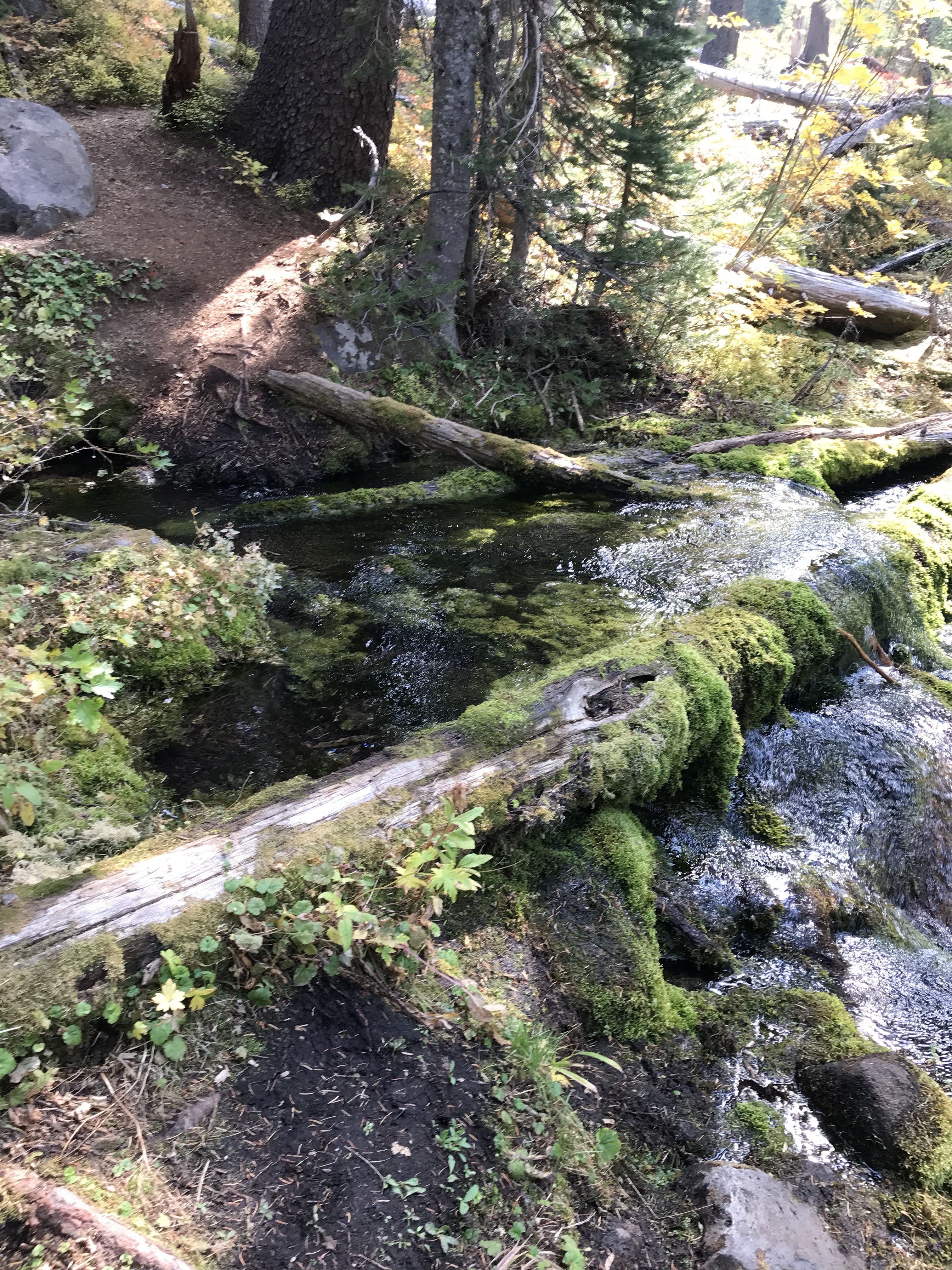 The path to Ranger Springs was about a mile. It kept crossing dry stream beds, making me think I’d walked all that way for nothing. Then I’d see the path continuing on and keep walking. I came to the horse camp and still no water. Then I finally heard it, the unmistakeable sound of a gushing creek. The descriptions really don’t do it justice. It’s worth the walk just to see all that water gushing out of nothing, merrily babbling over soft green boulders.