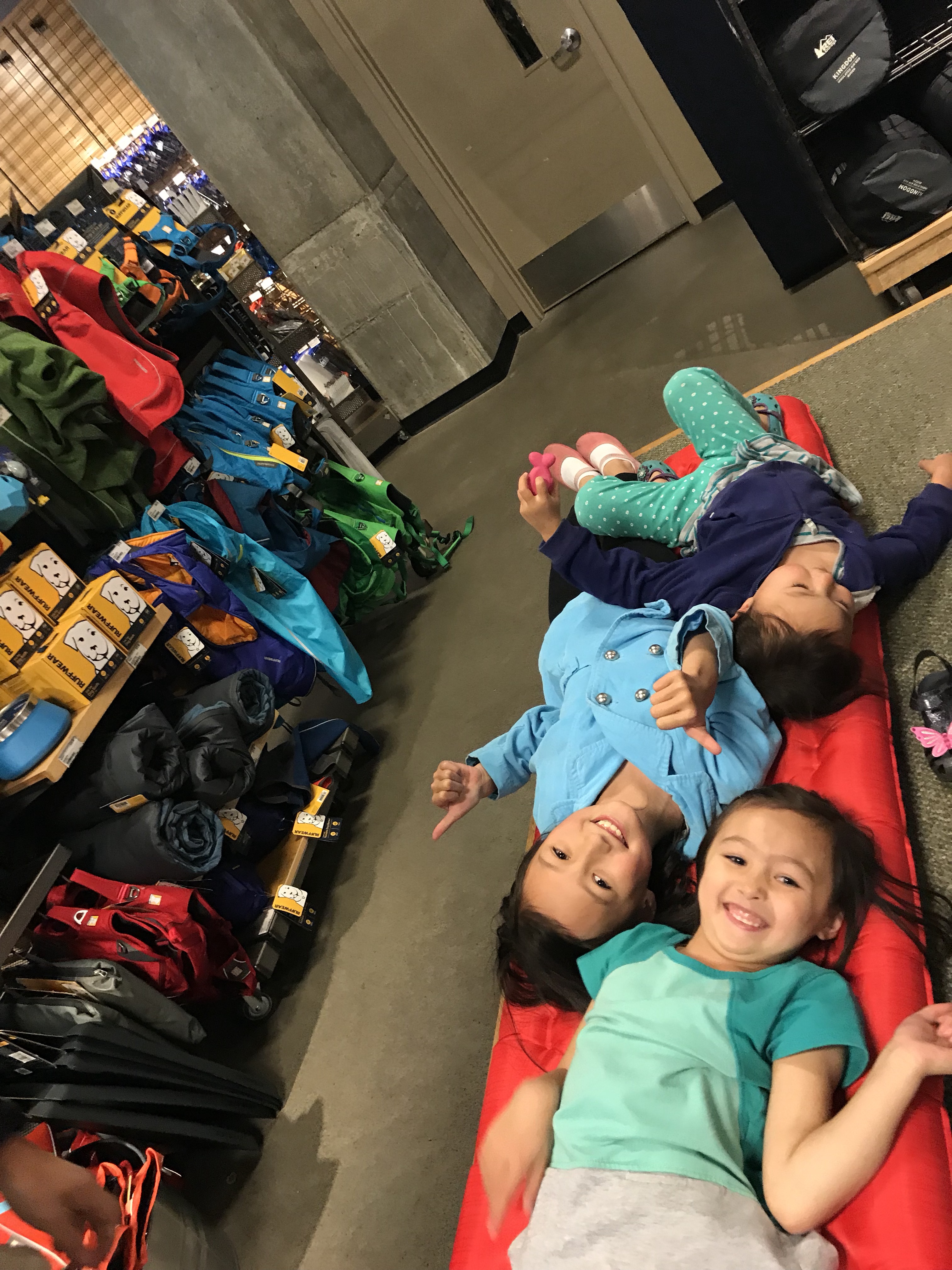 We went to Portland REI (no sales tax in Oregon!) where they said I could return my busted exped mat for store credit. The kids helped me pick out a new Big Agnes AirAxl. And I got another pair of Altras.