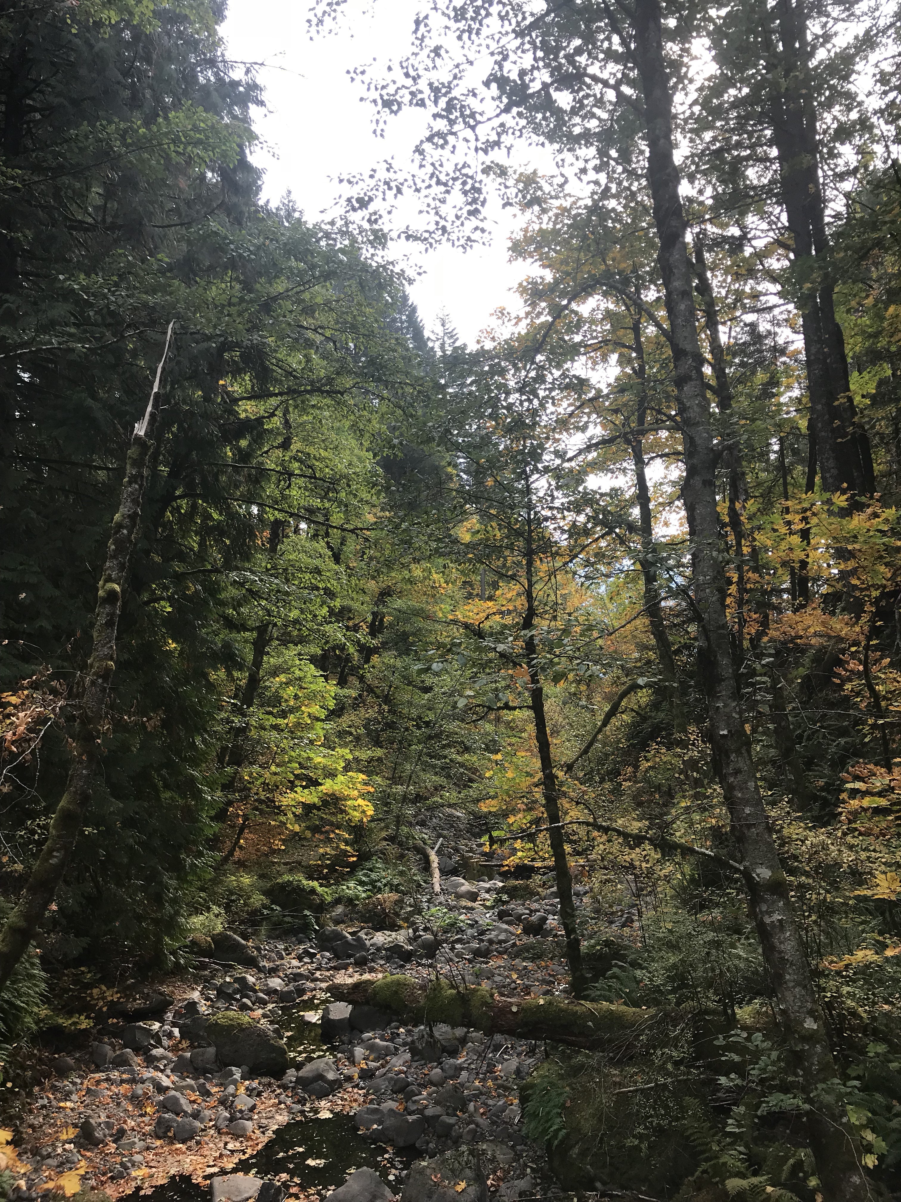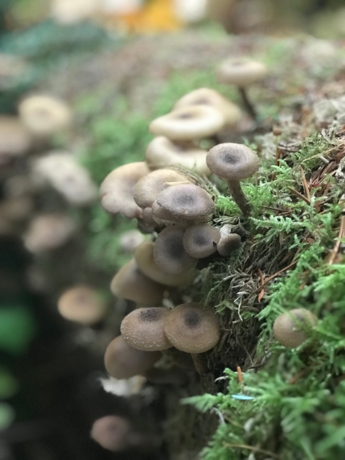 As usual after a day off, it took me a long time to get going. My new mat felt super comfie but it was hard to roll up and stuff. On the path, I ran into a parade of fellow hikers and their dogs. I played leapfrog with one dude, all the way to the turn off for Tabletop Mountain. We kept passing each other when one of us was paused to take photos of mushrooms. Because the mushies were poppin!