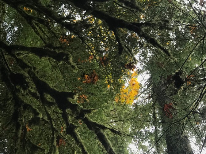 The orange and yellow leaves coated the path now. The veins of the leaves made repeating intricate patterns. Eye catching and slippery. Determined to make some distance, I tromped over miles of fractal designs.